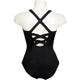 Short lace sleeve leotard with scoop front and back