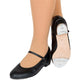 Full sole ballet flat with attached elastic strap and elastic drawstring